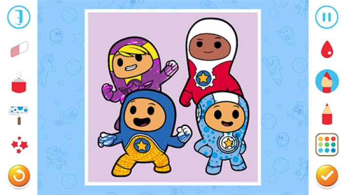 U Go Jetters svetu bojenja, granice ne postoje! Odaberite između fantastičnog arsenala alata – bilo da preferirate preciznost olovaka, glatke poteze četkicom, živahnost sprejeva, blistavost šljokica ili unikatne šare rolera. Slobodno kombinujte stilove, ispunjavajte blokove ili puštajte mašti na volju slobodnim crtanjem. Sa bogatom paletom boja i raznolikih uzoraka, svaka kreacija će biti jedinstvena. Kada završite svoje remek-delo, lako ga sačuvajte u galeriji uređaja kako bi zauvek ostalo uspomena na vaše umetničke poduhvate.