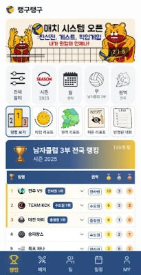 Srce platforme 랭구랭구 je revolucionarni sistem rangiranja u realnom vremenu. Zaboravite na subjektivne procene – ovde se poredak tima određuje isključivo na osnovu rezultata utakmica, detaljno klasifikovan po nacionalnim, regionalnim i lokalnim nivoima. Svaki tim dobija uvid u analitičke izveštaje koji uključuju procente pobeda i set-razlike, jasno identifikujući prednosti i slabosti. Pronalaženje pravog protivnika nikada nije bilo lakše: sistem automatski preporučuje timove sa sličnim rangom, omogućavajući vam da jednim dodirom dogovorite meč prema željenom datumu, lokaciji i uslovima.