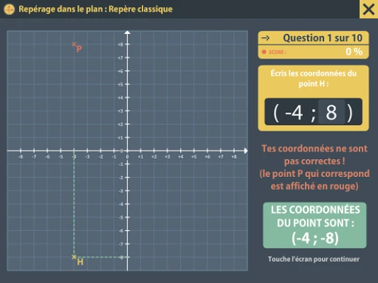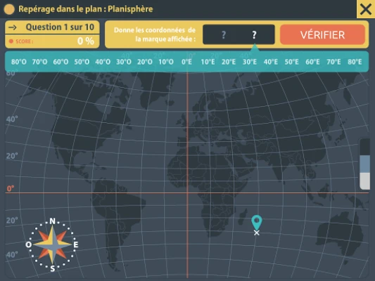 Započnite svoje matematičko putovanje sa snalaženjem na pravoj liniji, gde Repérage nudi dva ključna scenarija: rad sa brojevnom polupravom i brojevnom pravom. Svaki modul pruža izuzetnu fleksibilnost u podešavanju broja pitanja (između 5 i 20), vrste koordinata (celi, decimalni ili razlomljeni brojevi) i nivoa težine (tri dostupna nivoa). Bilo da vežbate očitavanje koordinata tačke ili postavljanje tačke na zadatu koordinatu, Repérage vas vodi kroz izazove prilagođene vašem nivou. Prelaskom na snalaženje u ravni, susrešćete se sa četiri različita tipa vežbi: šahovskom tablom, pozitivnim kvadrantom, klasičnim koordinatnim sistemom i planisferom, uz mogućnost prilagođavanja broja pitanja i izbora između očitavanja koordinata ili pozicioniranja tačaka.